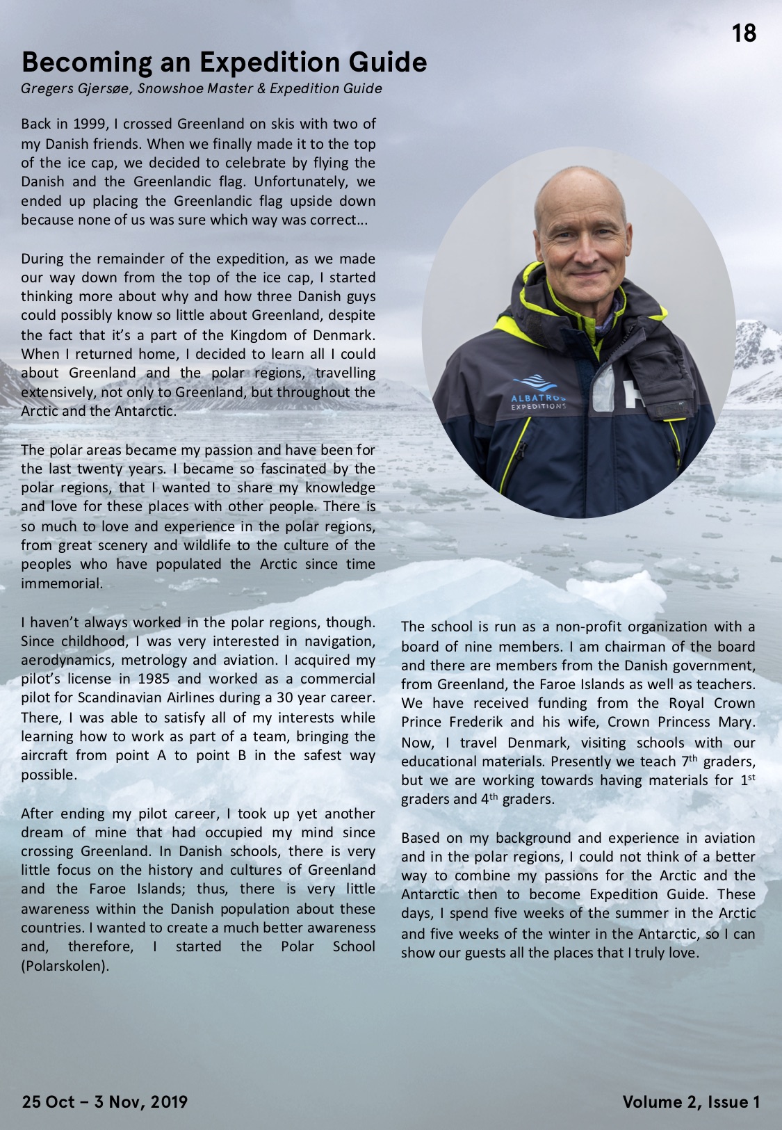 This article tells the story of how a fascination with Greenland led me to a second career in the polar regions, the founding of Polarskolen, and ultimately to becoming an expedition guide.